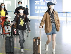 当天的董洁穿搭简约低调,卡其色外套搭配牛仔短裤,利落勾勒出修长纤细的美腿,头戴鸭舌帽遮住大半脸庞,刻意避开镜头焦点。她单手插兜,步履从容洒脱,褪去了往日荧幕上的温婉或清冷,多了几分生活里的干练随性。身旁的顶顶则身着黑色卡通卫衣与牛仔裤,背着双肩包,还主动提着行李箱,小小年纪便懂得为妈妈分担。