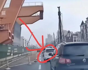韦先生自己的遭遇,同样令人揪心。他的车头被倾倒的龙门吊擦过,车前保险杠损坏严重,碎片散落一地,但万幸的是,龙门吊并未压到车辆前机盖,也没有造成人员受伤。韦先生事后回想起来仍心有余悸,坦言只要当时自己的车速再快一两秒,车辆就会被龙门吊正面砸中,后果不堪设想,轻则车毁人伤,重则性命难保。
