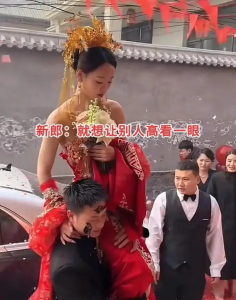 原本,扛肩进门或许可以是婚礼中一个有趣的小环节,但在接近零度的严寒中,却渐渐变了味,沦为了吸引眼球的展示。过去,新娘进门时低头遮面,藏着中式婚礼的含蓄与温婉;如今,婚礼环节愈发显眼张扬,这本身既不是进步,也不是退步,只是婚礼的规则发生了变化,可这种变化,却从未提前考虑过现场长辈的感受,也未曾与他们有过任何沟通。