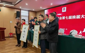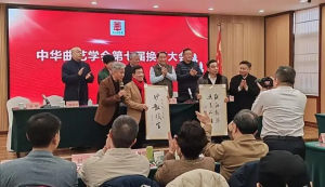 活动现场还有一个暖心细节,姜昆特地为大会题字一幅,以此寄托对中华曲艺学会未来发展的期许,题字结束后,他与在场所有参会人员起身合影留念,现场气氛热烈而融洽,台下观众纷纷鼓掌,共同庆祝此次换届大会圆满落幕。