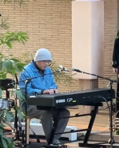 而如今,窦唯剃去了浓密的大胡子,整个人显得清爽了许多,想来或许是碍于阿那亚的寒冷天气。他常常头戴一顶毛线帽,恰好遮住了秃顶的部位,褪去了邋遢感,整体形象也显得年轻了十岁,眉眼间的温和,更添了几分亲切感,少了几分距离感。