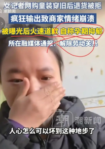 1月29日,一家童装商家发布视频爆料,称王某因之前的维权视频被下架,便指控商家侵权,声称该视频导致她和家人遭受网络暴力,甚至引发了她严重的产后抑郁。不仅如此,许多商家的店铺还遭到了大量恶意订单和无理仅退款申请的骚扰,还有人出面为王某出头,恶意恐吓商家,逼迫商家关闭店铺。