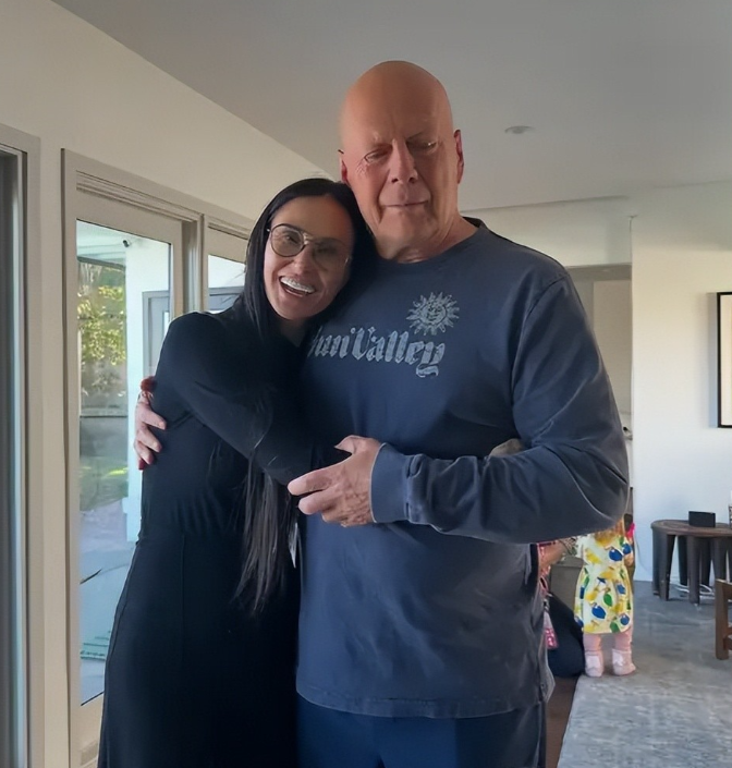黛米·摩尔与布鲁斯相识在1987年,那时候两人都处在事业巅峰,相恋没多久就步入了婚姻殿堂,婚后一起生了三个女儿。这段婚姻虽然只维持了13年,最后以离婚收场,但两人从来没有反目成仇,始终保持着亲密的好友关系,心里都记挂着彼此和孩子。布鲁斯患病后,黛米·摩尔几乎放下了自己的工作,经常带着三个女儿来看望他,陪他说话、散步,翻着老照片陪他回忆过往,试着唤醒他的记忆。在他生日那天,更是晒出三代同框的合照,配文“你所需要的只是爱”,每一个字里,都藏着满满的温情。